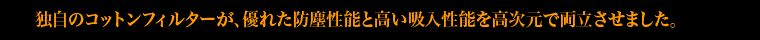 GREEN FILTERの2層コットンにある深いプリーツは、フィルターの表面積を10〜20%の増加させます。1つは細い縫糸、もう1つは中間の縫糸によって交互に織りあわされた層は、他の製品よりも更に薄くて丈夫であり、また0.5ミクロンもの小さな有害物質を遮断することができるのです。耐久性にも優れ、洗浄による再利用においても問題なく使用できます。 |