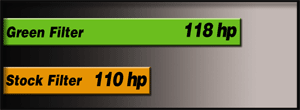 FILTER"は、既製のペーパーエアフィルターを取り付けた同じ車よりも6.7%の馬力アップに貢献しました。 |